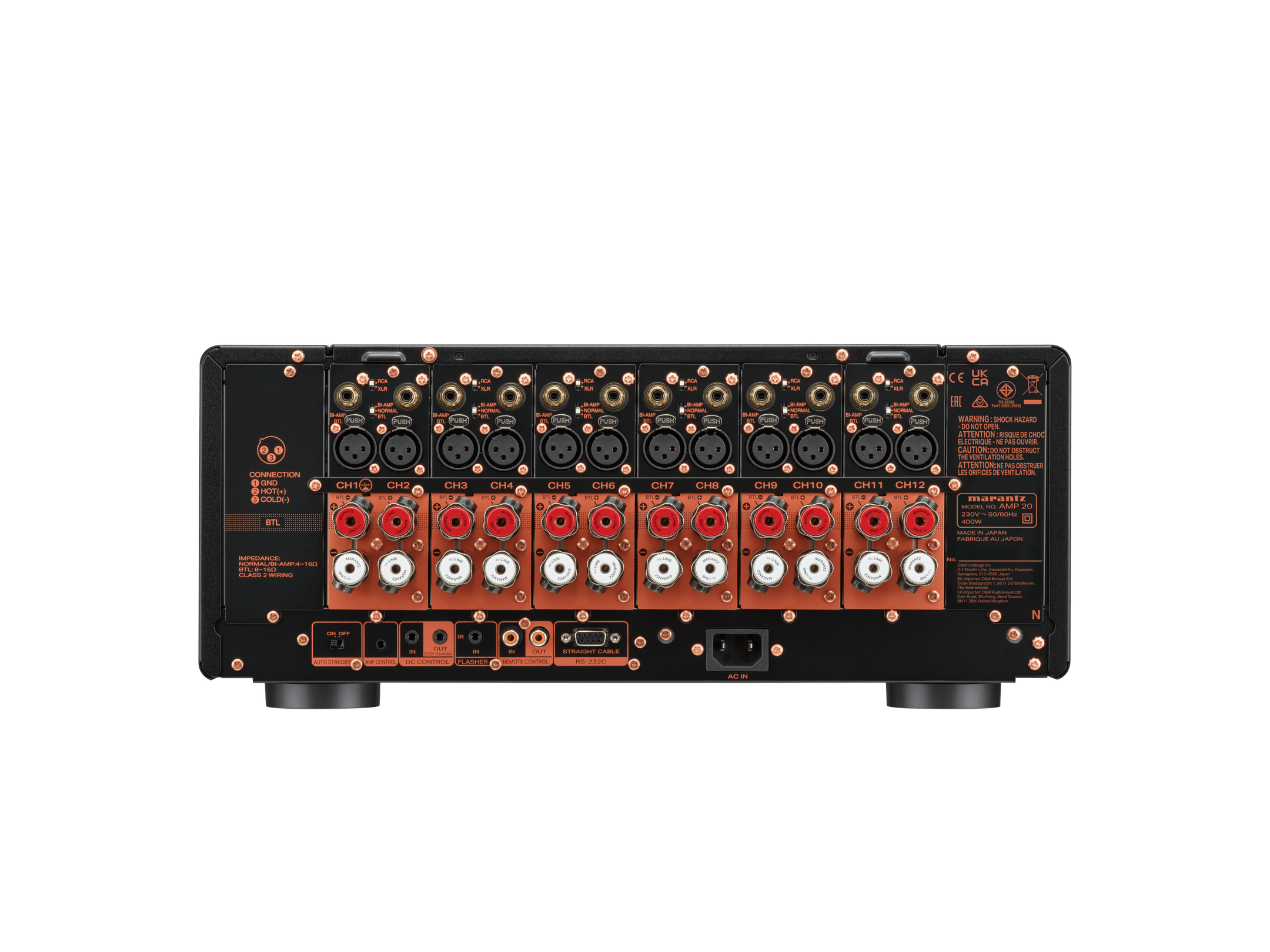 Der Marantz – AMP 20 ist ein außerordentlich leistungsstarker 12-Kanal-Verstärker, der mit dem AV 20 zu einem Heimkinosystem der Referenzklasse kombiniert werden kann.